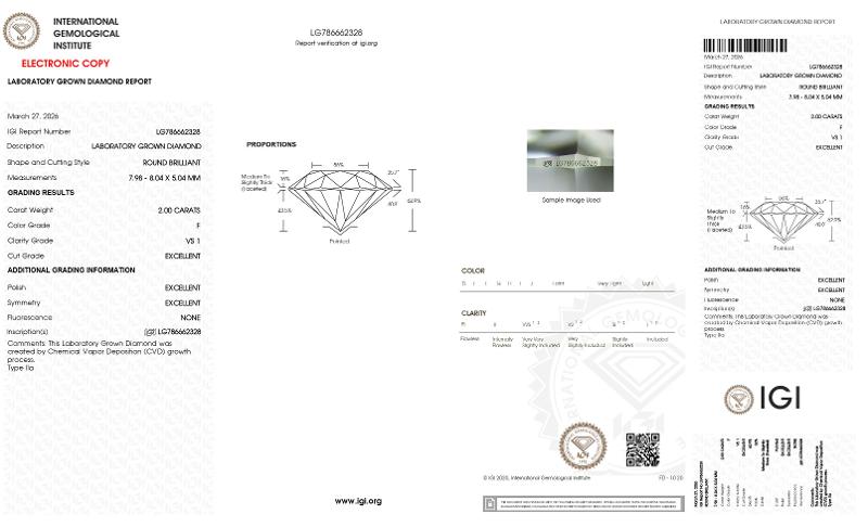 | 2.00 | Round | F | VS1 | IGI | 59.4 | 63 | 8.04x8.17x4.82 | Contact Vendor |