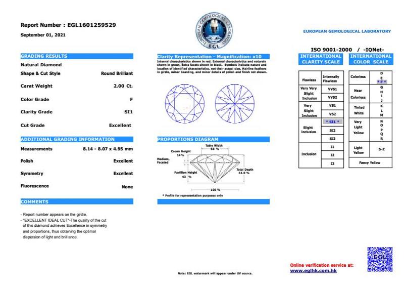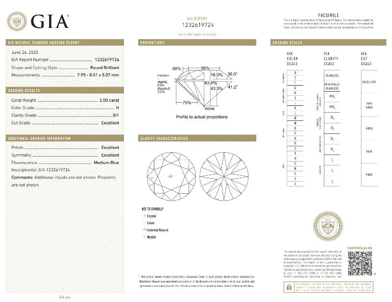 | 2.00 | Round | H | SI1 | EGLUSA | 62.9 | 60 | 7.94x7.80x4.95 | Contact Vendor |