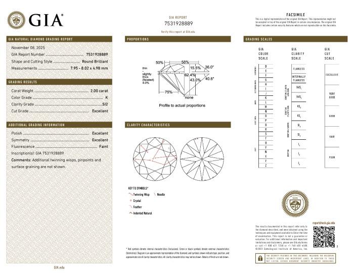 | 2.00 | Round | D | VVS1 | IGI | 59.9 | 60 | 8.08x8.12x4.86 | Contact Vendor |