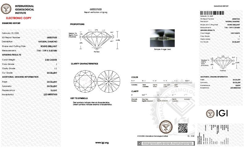 | 2.00 | Round | E | VS1 | IGI | 63.4 | 54 | 7.95x8.04x5.07 | Contact Vendor |
