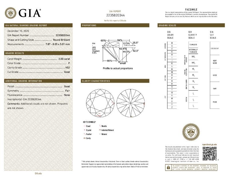 | 2.00 | Round | F | VVS2 | IGI | 60.3 | 59 | 8.13x8.16x4.92 | Contact Vendor |