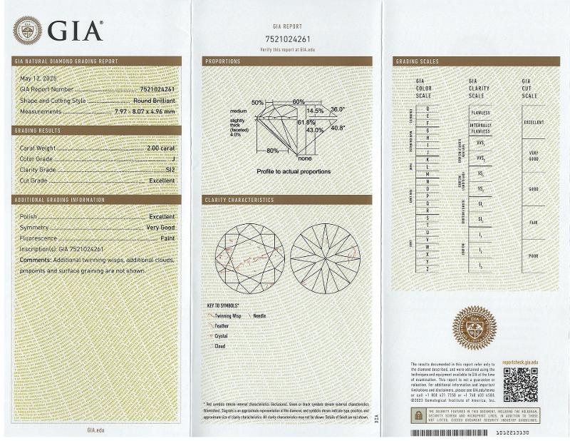 | 2.00 | Round | F | VS1 | IGI | 62.0 | 61 | 7.99x8.03x4.97 | Contact Vendor |