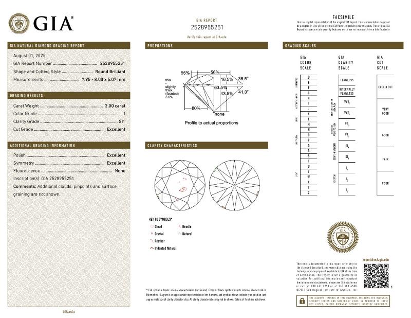 | 2.00 | Round | I | SI1 | GIA | 63.3 | 56 | 7.96x8.01x5.06 | Contact Vendor |