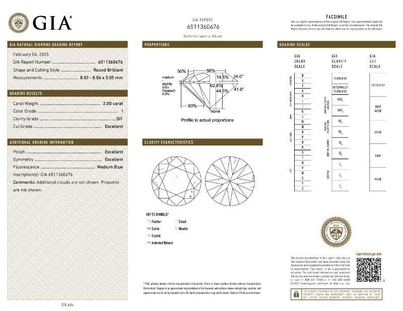 | 2.00 | Round | I | SI1 | GIA | 62.8 | 56 | 8.02x8.06x5.05 | Contact Vendor |