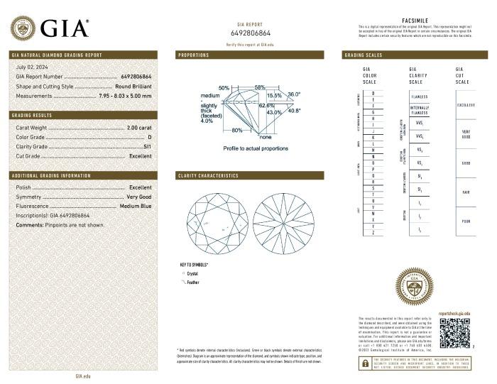 | 2.00 | Round | D | VVS2 | IGI | 59.0 | 60 | 8.14x8.18x4.82 | Contact Vendor |