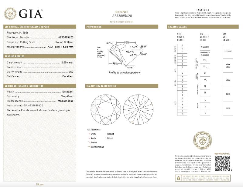 | 2.00 | Round | I | VS2 | GIA | 63.4 | 55 | 8.01x7.92x5.05 | Contact Vendor |