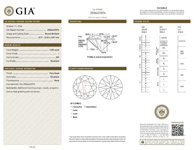 | 2.00 | Round | F | VVS2 | IGI | 59.1 | 61 | 8.18x8.12x4.82 | Contact Vendor |