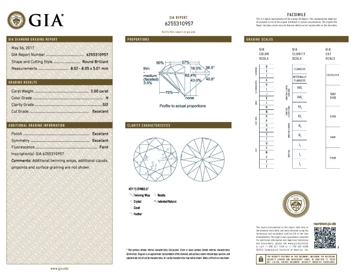 | 2.00 | Round | D | VVS2 | IGI | 63.0 | 57 | 7.91x8.00x5.03 | Contact Vendor |
